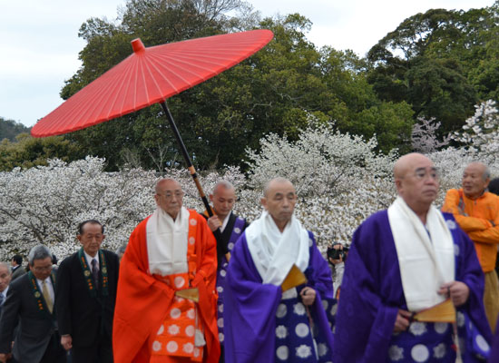 | 脇道から金堂に向かう新人僧侶? | 本坊から本堂に向かう大僧正? | ||