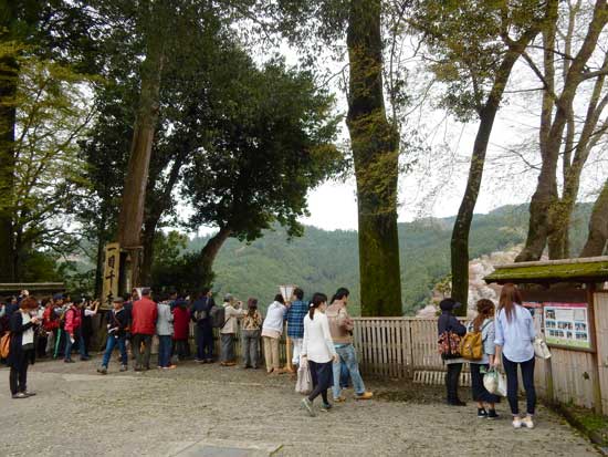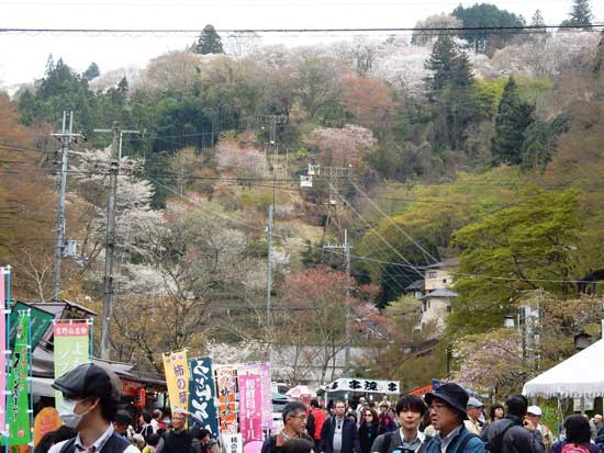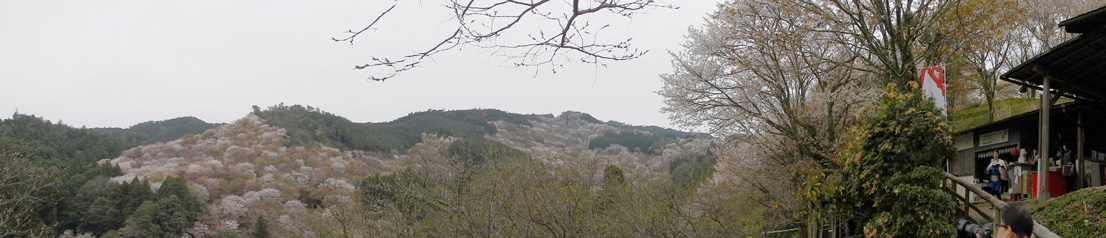 | 一目千本展望所 吉水神社境内にあり、中千本から上千本が一望できる 右写真クリックでパノラマ拡大写真 |