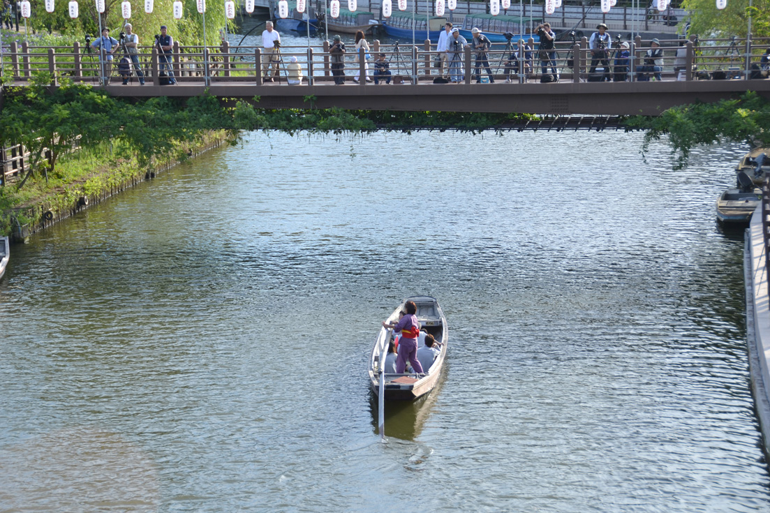 | 橋上では嫁入り船撮影のためカメラマンが方列 | ||||